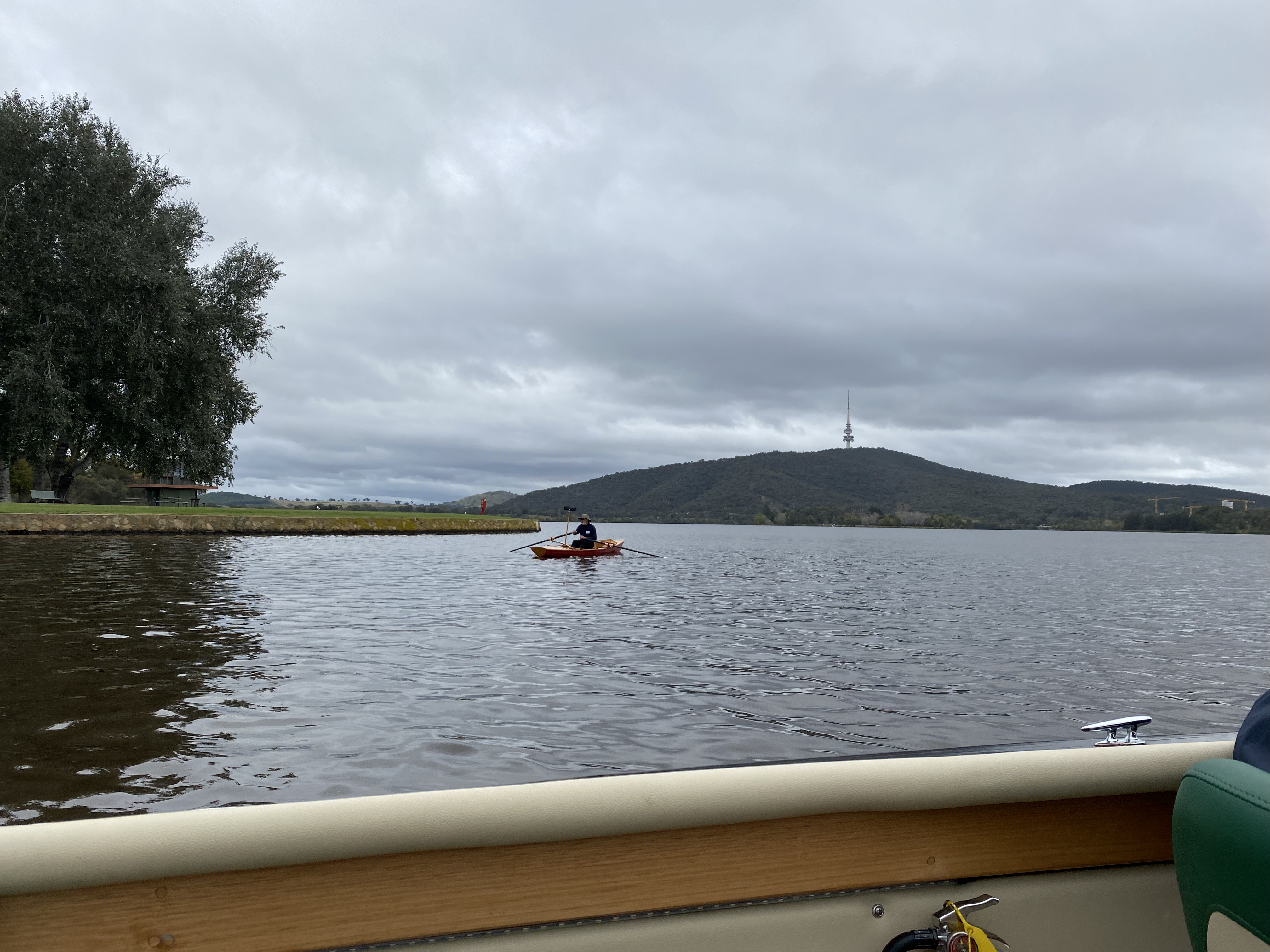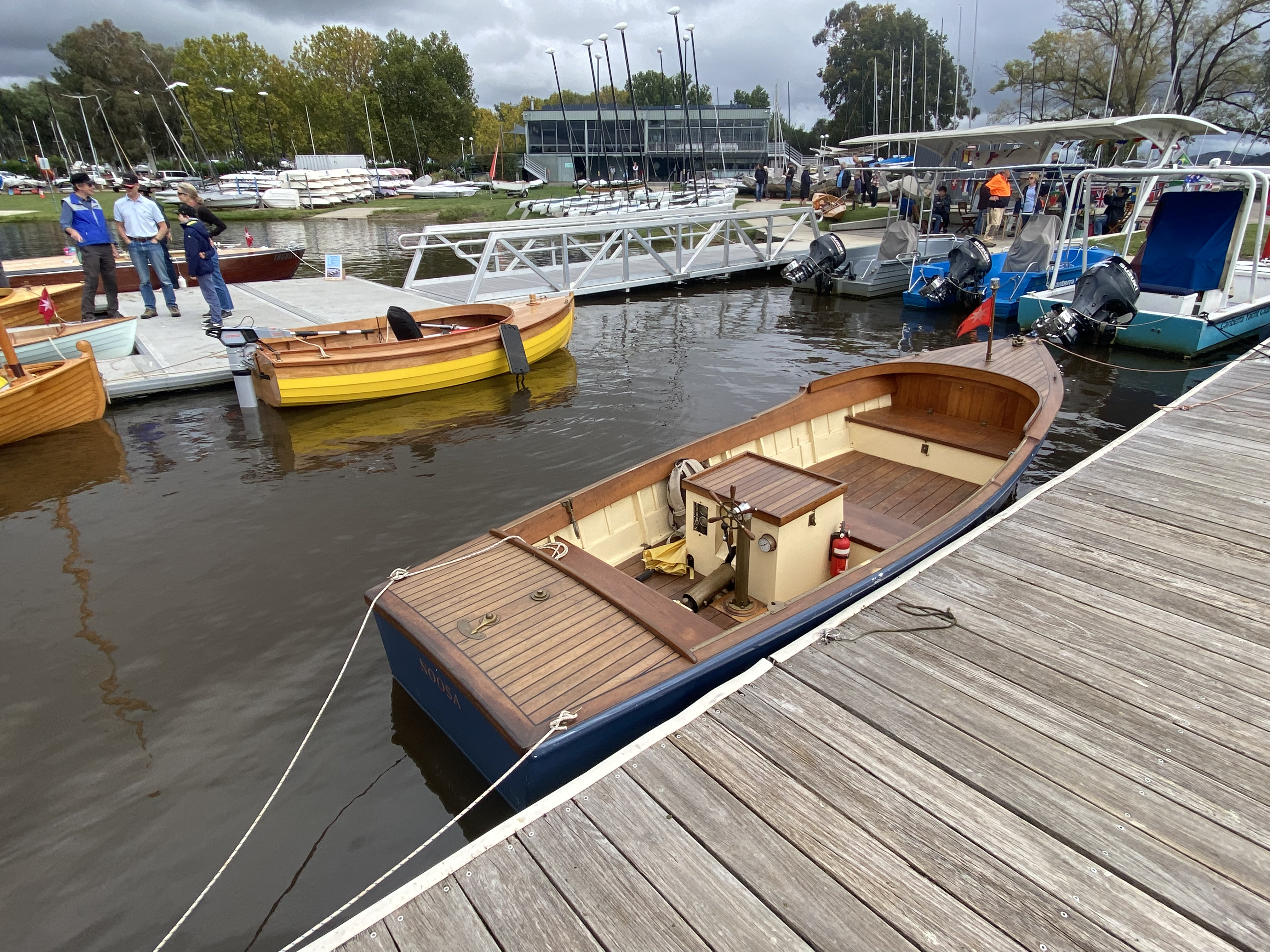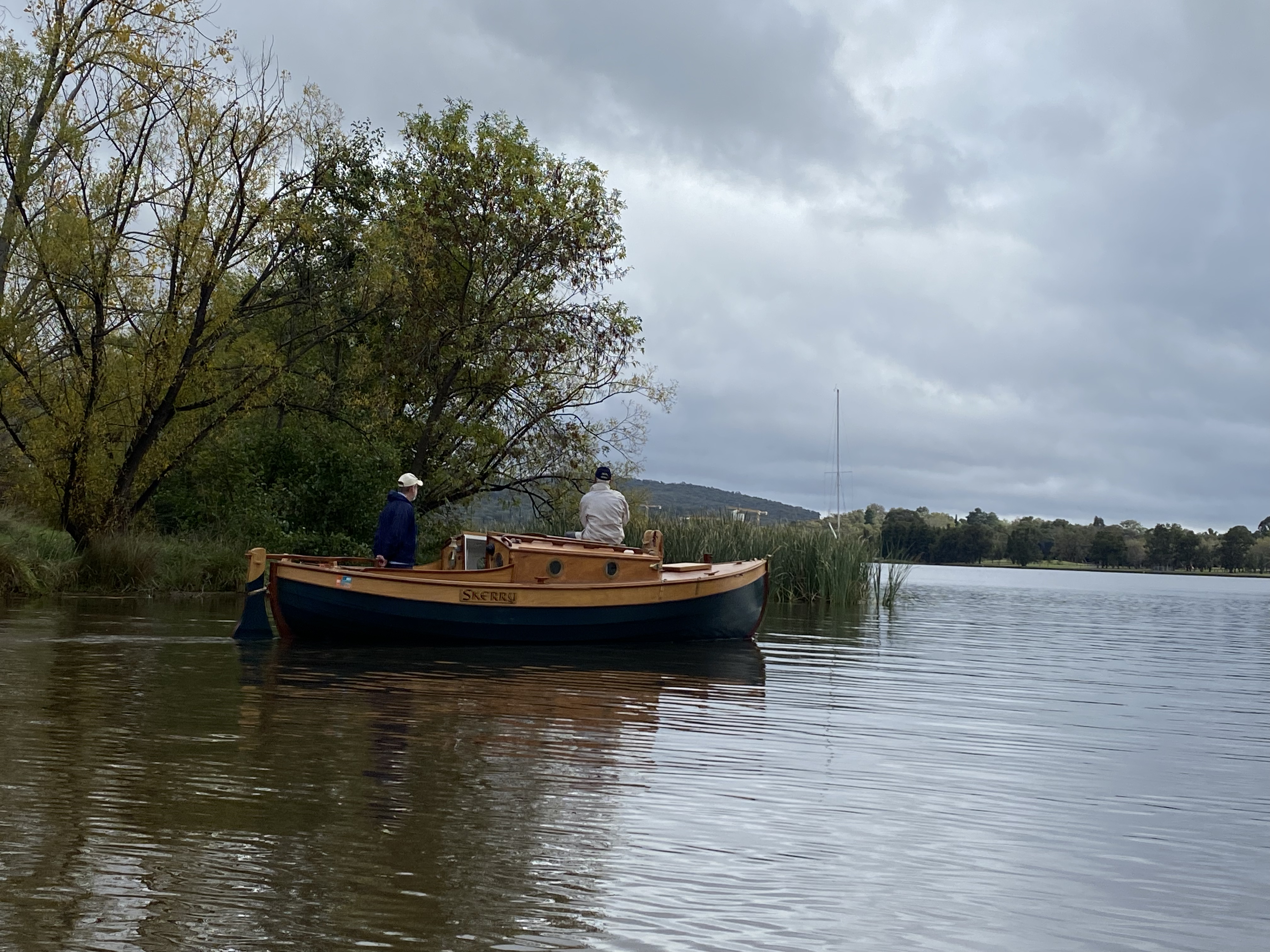 Despite rain threatening, on Saturday morning we cruised east past some of the capital’s well known institutions, such as the National Museum, National Library, National Gallery, the High Court and back to the yacht club. During lunch there was a display of boats to the public, which was listed as an event of the Canberra Heritage Festival. A fair crowd turned up, to admire the boats and chat to owners, especially interested by the older style putt putt motors. After lunch a few boats headed to the western end of the lake, to see the Governor General’s residence. On the social scene, boat owners and friends gathered for a meal on the Saturday night at a local hotel.