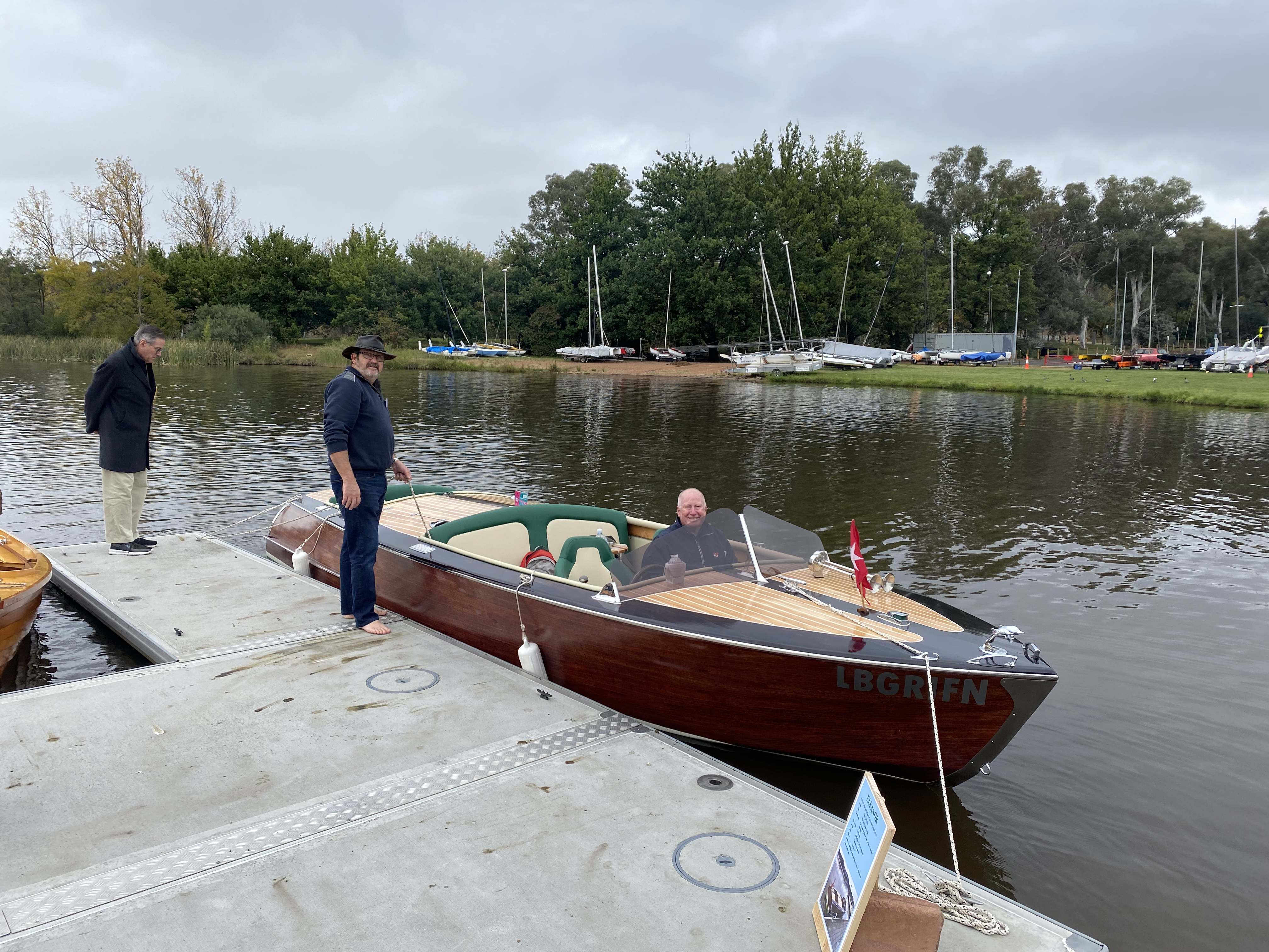 Eleanor is a replica 22 foot 1950s gentleman’s runabout, built by Bob Davies over 6 years (2013 -2018) with all Australian timbers. Powered by a modern 6 litre V8 motor with the full range of anti-pollution gear, she rarely gets above idle on Lake Burley Griffin. Eleanor was an entrant in the Hal Harpur award in 2021.