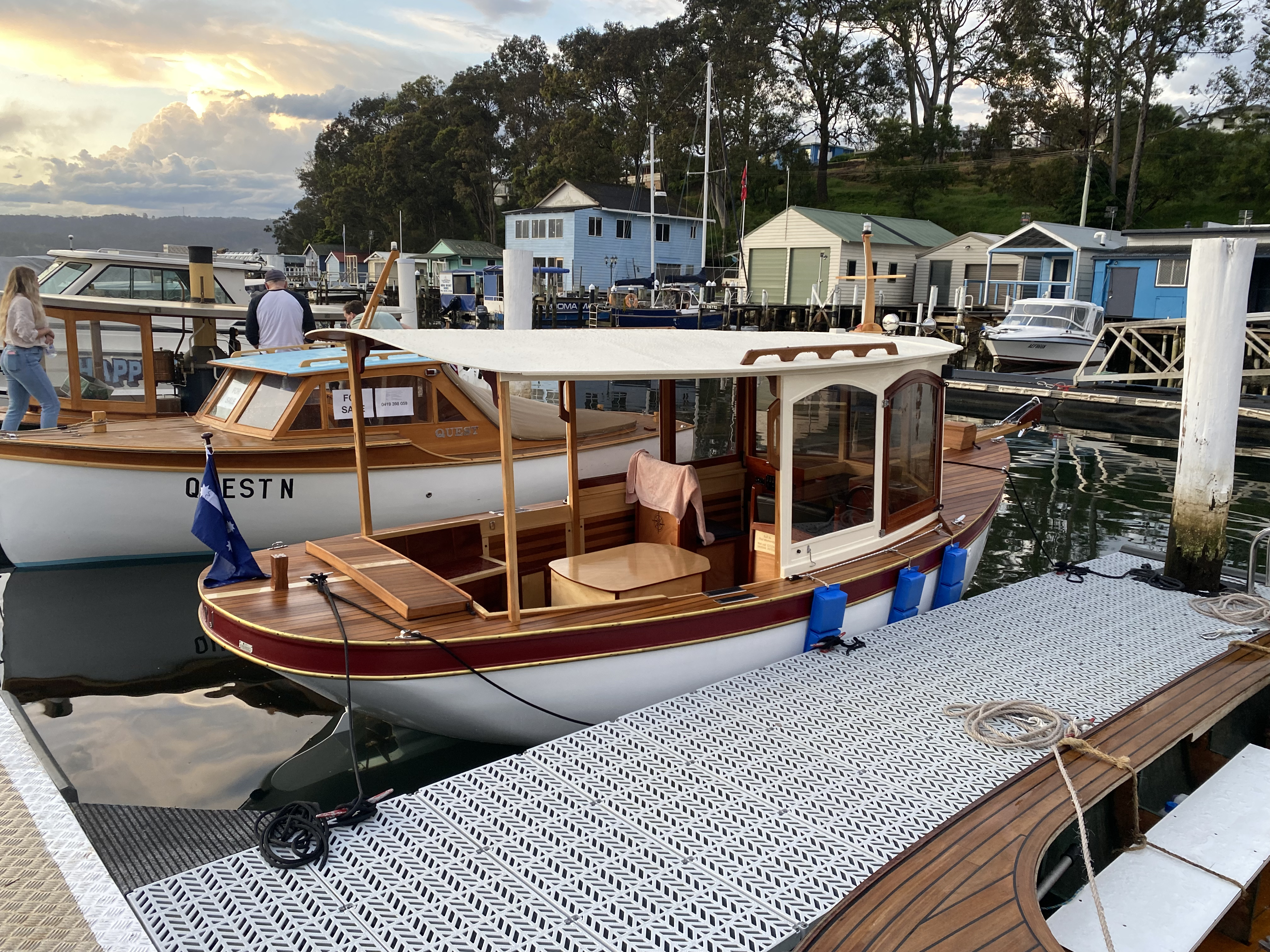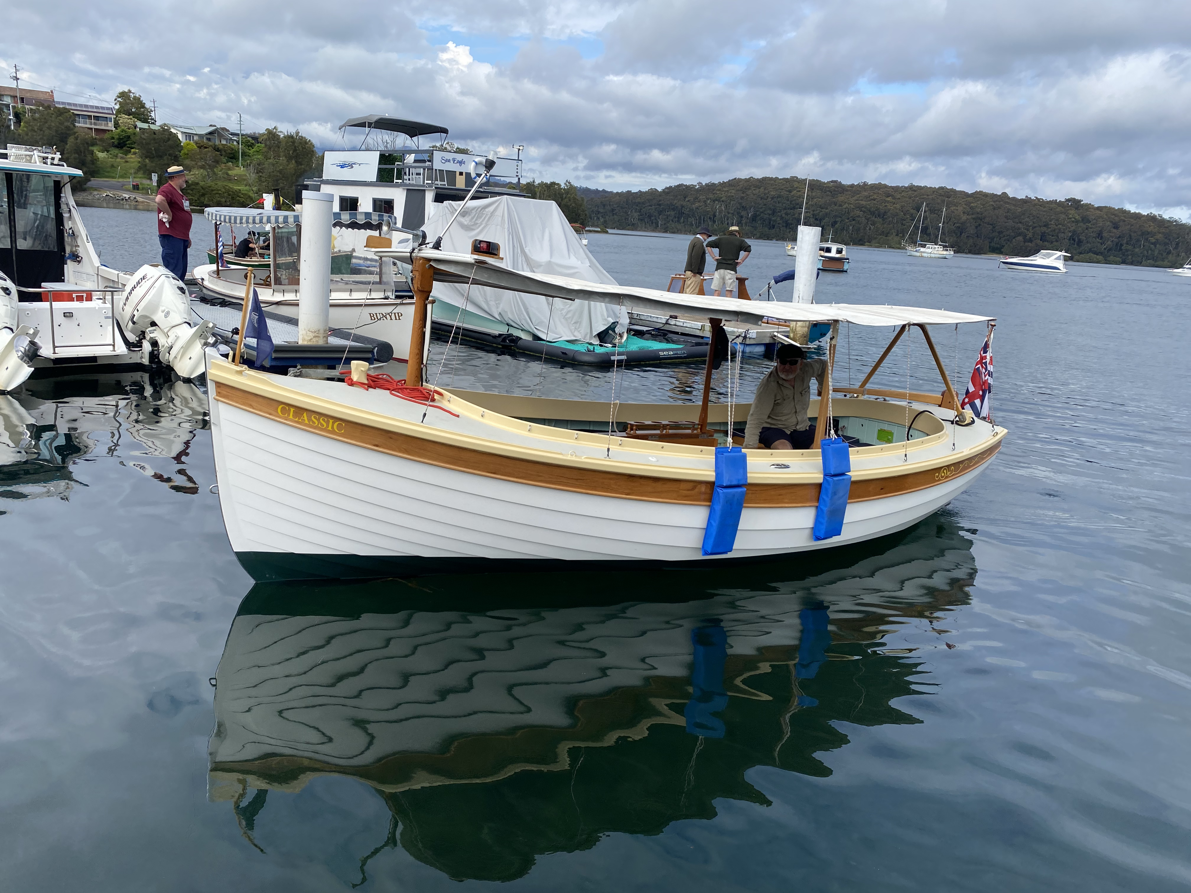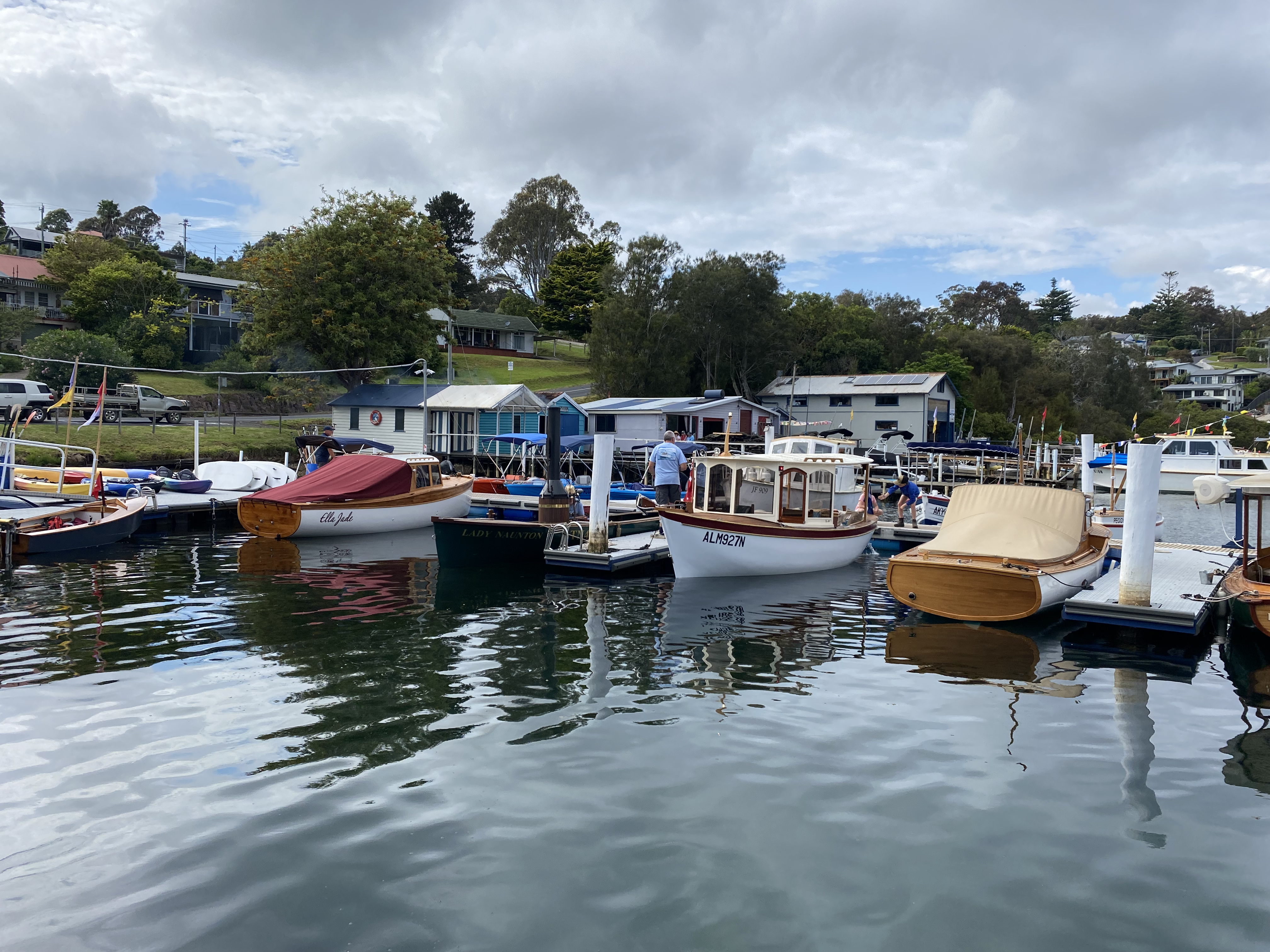 The Friday night BBQ at one of the heritage boat sheds was a fantastic opportunity to meet & greet one another. It was clear that there was considerable post-covid enthusiasm for getting together and having a wonderful event. The Saturday weather couldn’t be more perfect! See below for a large number of great photos of wonderful boats on the beautiful waters at Narooma. Unfortunately, Sunday was a wash-out. Incredible storms caused the cancellation of the traditional Grand Parade out to the bar and back.